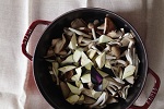 *重ね煮----1番下に重ねます。切り方は中心から切る「まわし切り」かせん切り。旨みが出るのに、さっぱりしていて、しいたけ嫌いを克服した人が多いです。